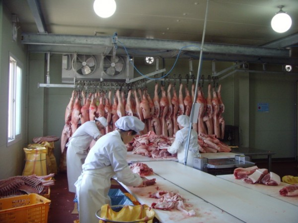 지육을 발골 및 포장하는 모습